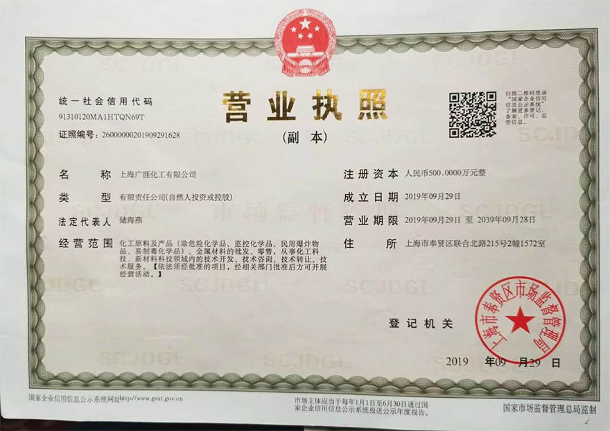 上海廣涯化工有限公司是一家集生產(chǎn),研發(fā),銷售于一體的化工企業(yè)!